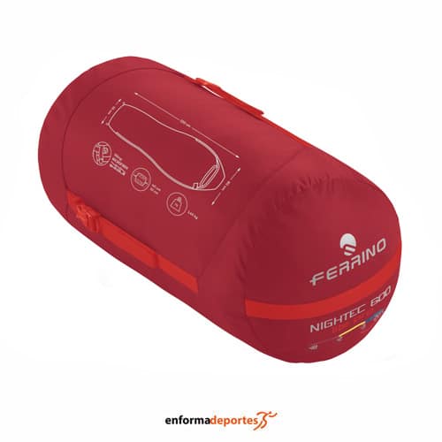 Saco de dormir FERRINO NIGHTEC LITE PRO 600, confeccionado en tejido exterior 100% 360T 30D Ripstop Polyester recycled y tejido interno 100% 66D 190T Polyester recycled, con relleno Nightec 600 Lite Pro M: microfibre 780 g shingle construction, con confort térmico en torno a los ‑3 grados, con construcción «Shingle» para un mejor aislamiento térmico con igual volumen, dispersión del calor mínima, gracias a las costuras desplazadas entre la capa interna y externa del saco las costuras no se comunican entre ellas, abertura fácil gracias al sistema «one touch» que permite cerrar y abrir la capucha desde el interior con una sola mano, con cremallera de «doble vía» lateral que permite abrir la parte inferior del saco, para regular la temperatura interior, con capucha parafrío capucha acolchada para mayor protección de la cabeza contra el frío, con cubrecremallera acolchada, collarín térmico acolchado barrera interna acolchada a lo largo de la cremallera para evitar la entrada de frío, con bolsillo portaobjetos, con doble banda que protege la cremallera colocada a lo largo de la cremallera facilita el deslizamiento del cursor y funda de compresión incluida que permite reducir el volumen del saco de dormir para facilitar su introducción en la mochila.