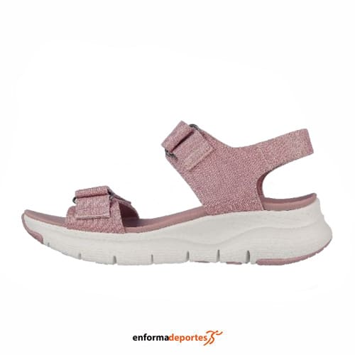 Sandalia mujer SKECHERS ARCH FIT, fabricada en parte superior de malla tejida, con puntera abierta, plantilla con amortiguación Arch Fit, con soporte en el arco plantar certificado, con cierre de velcro ajustable, cómoda y ligera.