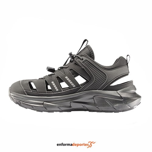 Sandalia hombre +8000 TUKIN,  fabricada con mediasuela de phylon con máximo poder de absorción, reduciendo los impactos sobre las articulaciones, con plantilla de alta ventilación,  suela de caucho antideslizante mejora la tracción y el agarre al terreno. Asimismo las grietas de flexibilidad proporcionan mayor estabilidad y eficiencia en la pisada. La planta cosida al corte y unida directamente a la mediasuela (CALIFORNIA LASTING) proporciona mayor estabilidad y comodidad.