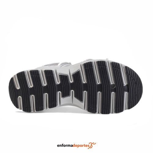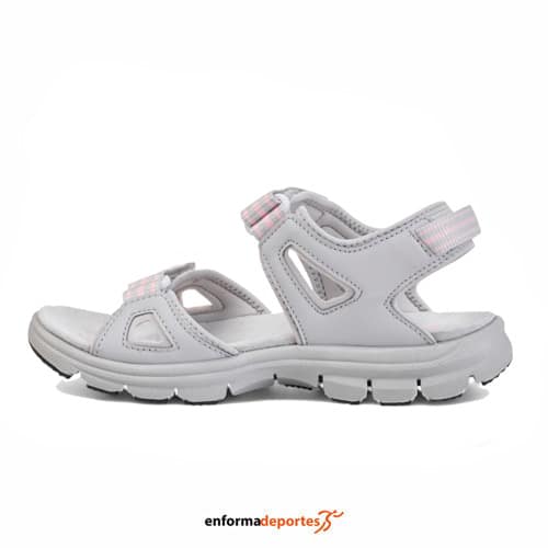 Sandalias mujer +8000 TEWOR, con suela de goma con estrías, ideal para caminatas poco exigentes, así como para uso cotidiano urbano, con diseño de planta con cortes transversales, favorece el movimiento del pie al caminar, con  ajuste con triple velcro que ayudará a sujetar el pie perfectamente, con amortiguación FOOTBED de EVA forrado, que garantiza un buen apoyo en la planta del pie, y, por otro, la mediasuela de phylon completementará el cushion.