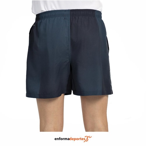 Pantalón corto hombre BULLPADEL BAJES, cofeccionada en tejido poliéster, con acabado Quickerdry, tecnología que utiliza microfilamentos para reducir la humedad y ayudar a la transpiración, de 42 cm de largo estampada, diseñada con cinturilla elástica con cordón ajustable, bolsillos laterales, braguero interior y gráfico de la línea en el lateral.