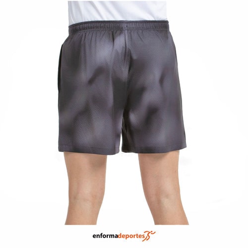 Pantalon corto hombre BULLPADEL MOS,  de 42 cm de largo, diseñado con cinturilla elástica con cordón ajustable, bolsillos laterales y braguero interior, confeccionada en tejido a la plana de poliéster elástico en dos direcciones, sublimada con detalle de perforado láser, se le aplica la calidad Binamic se garantiza la flexibilidad y ligereza de un buen tejido bielástico, proporcionando una gran libertad de movimiento en dos direcciones, integrando también el acabado de secado rápido que utiliza los microfilamentos para reducir la humedad y ayudar a la transpiración.