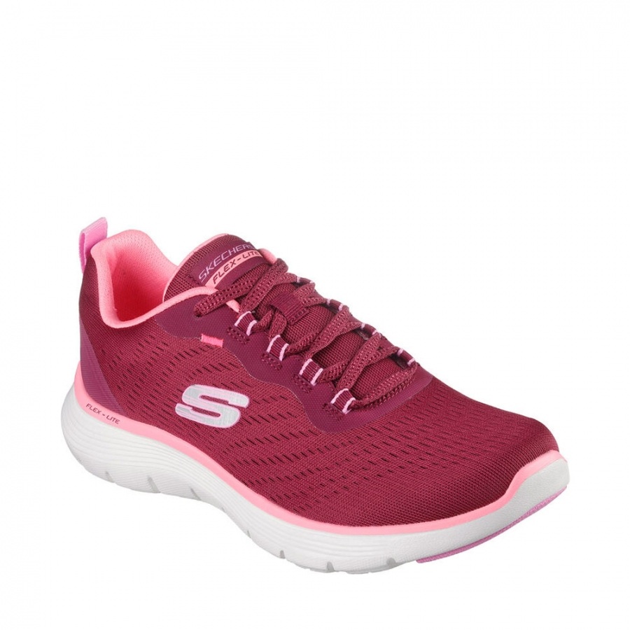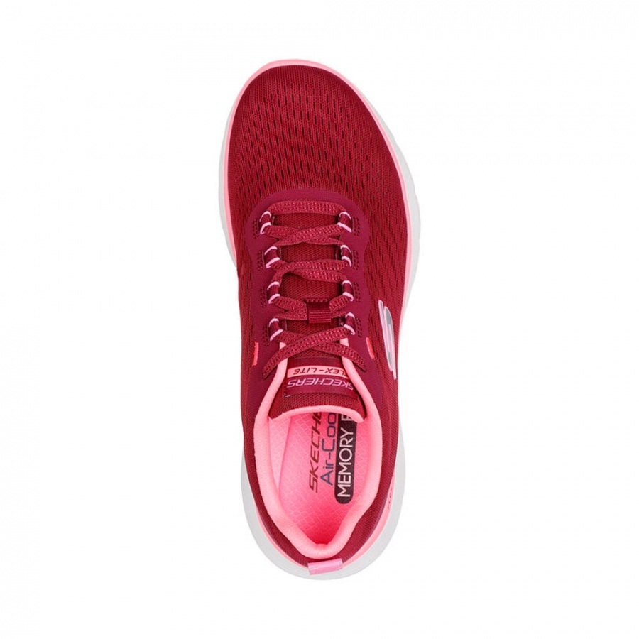 Disfruta de un estilo deportivo y de ocio con la comodidad de Skechers Flex Appeal 5.0 – Uptake. Esta zapatilla vegana con cordones incluye una parte superior de malla deportiva acolchada con ribetes metálicos y una plantilla con amortiguación Skechers Air-Cooled Memory Foam®.