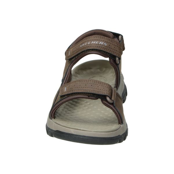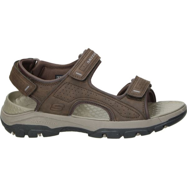 Viaja todo el día con la comodidad duradera de la sandalia Skechers Tresmen – Garo. Esta sandalia abierta Relaxed Fit presenta una parte superior sintética duradera con una plantilla Luxe Foam con amortiguación y un cierre de correa de tobillo de velcro. Características principales: El diseño Relaxed Fit® contribuye a la amplitud y comodidad en la puntera y la zona del metatarso. Cómoda plantilla con amortiguación Luxe Foam®. Detalles: Parte superior sintética lisa y duradera con puntera abierta. Modelo deportivo con tira en el tobillo y cierre de velcro. Media suela de sujeción con absorción de impactos. Talón de 1,9 cm. Logotipo de Skechers®.