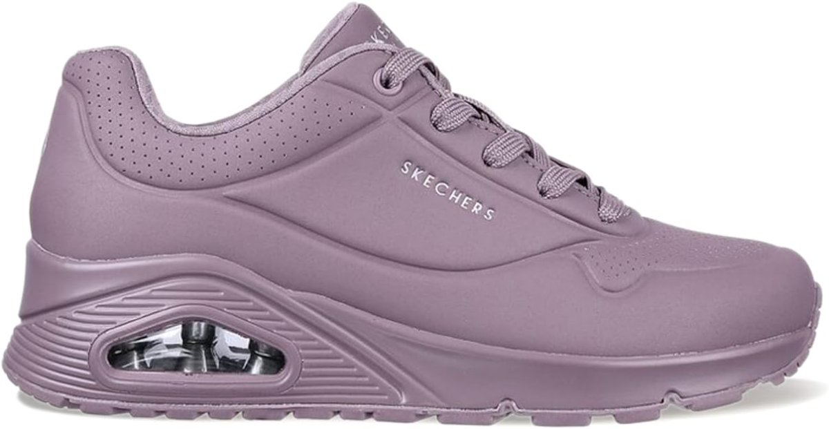La comodidad de un modelo clásico con cámara de aire se actualiza con la Skechers Street™ Uno – Stand on Air. Moderno modelo con cordones con parte superior de piel sintética lisa y perforada, una plantilla Air Cooled Memory Foam y media suela con cámara de aire visible Skech-Air.