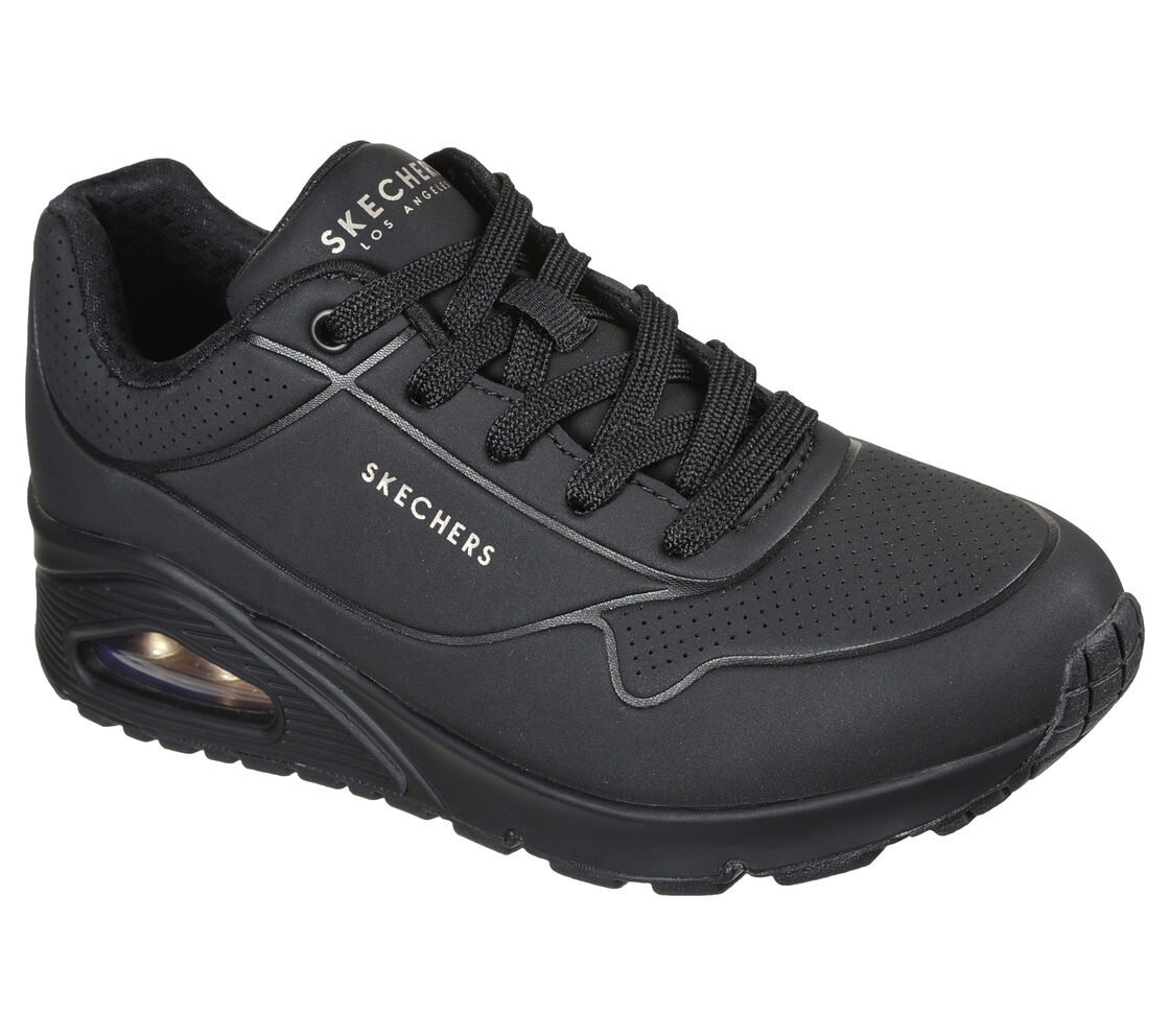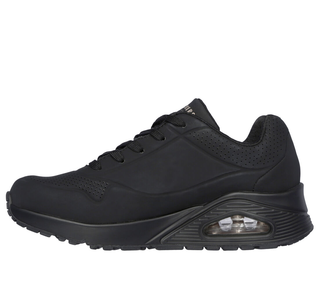 La comodidad de un modelo clásico con cámara de aire se actualiza con la Skechers Street™ Uno – Stand on Air. Moderno modelo con cordones con parte superior de piel sintética lisa y perforada, una plantilla SKECHERS Air Cooled Memory Foam y media suela con cámara de aire visible Skech-Air.