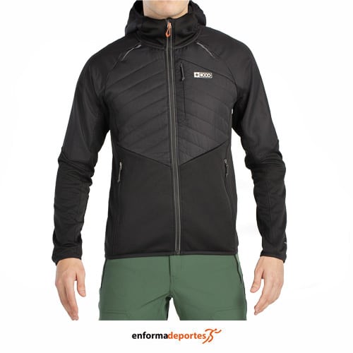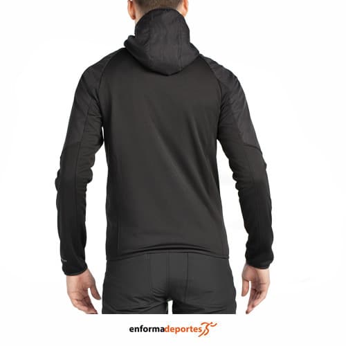 Softshell hombre +8000 NIEL, capa híbrida que combina funcionalidad y diseño técnico. Las mangas y la espalda están confeccionadas en tejido Thermalflex (100% poliéster), un material cálido, elástico y con interior polar que proporciona confort y libertad de movimiento, el panel frontal y los refuerzos sobre los hombros están realizados en resistente tejido Ripstop repelente al agua, con un ligero acolchado en la parte delantera para mejorar el aislamiento térmico, con puños y bajo rematados con vivos elásticos, para un mayor ajuste, con bolsillos laterales con cremallera, un práctico bolsillo en el pecho y capucha integrada.