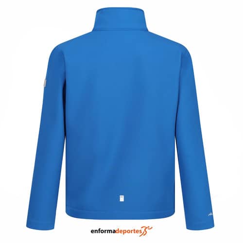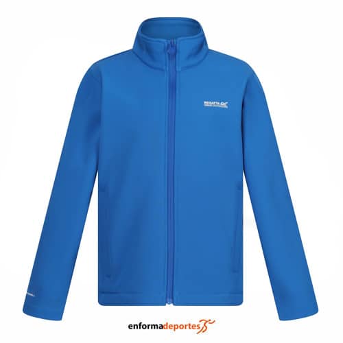 Softshell junior REGATTA CERA, confeccionado en tejido repelente al agua, transpirable y resistente al viento,ofreciendo protección duradera , 270 g/m² Softshell STRETCH cálido reverso tejido reciclado 96 % poliéster/4 % elastano, con 2 bolsillos inferiores y tira reflectante.