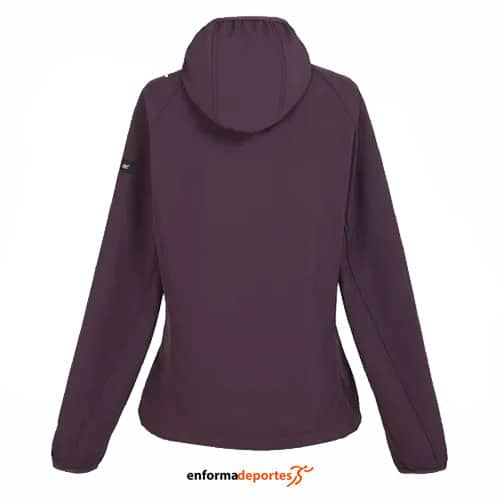 Softshell mujer REGATTA AREC III, confeccionada en poliéster y elastano, con acabado repelente al agua, con bolsillos laterales con cremallera y capucha.