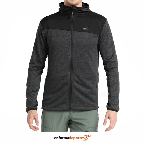Sudadera hombre +8000 CROMOS, confeccionada en tejido poliéster, de capucha fija, bolsillos laterales con cremallera, puños y capucha recogidos con vivo elástico, bajo ajustable con tanka.