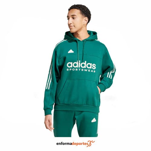 Sudadera hombre ADIDAS TIRO FLEECE HOODIE, confeccionado en tejido algodón y poliéster, de corte holgado permite libertad de movimiento, con bolsillo tipo canguro, capucha fija con cordón ajustable y puños y cintura elástica.