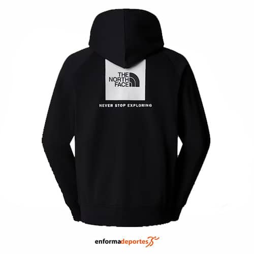 Sudadera hombre THE NORTH FACE RANGLAN BOX NSE HOODIE, confeccionada en tejido poliéster reciclado de 295 g/m², con capucha de dos piezas, con puños y bajo de canalé, bolsillo canguro y logotipo estampado en la parte delantera y trasera.