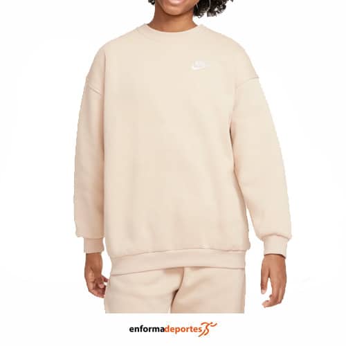 Sudadera junior NIKE SPORTSWEAR CLUB FLEECE, de corte oversize, confeccionada en tejido Fleece cepillado para una mayor suavidad tanto por dentro como por fuera, con puños y bajo elásticos para aportar comodidad y que sean fáciles de poner y quitar.