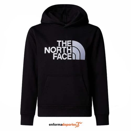 Sudadera junior THE NORTH FACE DREW PEAK PULLOVER HOODIE, confeccionada en tejido algodón, que proporciona calidez y flexibilidad de movimiento, cuenta con capucha fija con puños y cintura acanalada y bolsillo tipo canguro.