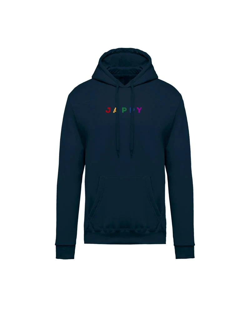 Sudadera estilo minimalista confeccionada con un 85% de algodón orgánico y un 15% de poliéster reciclado con logo Jappy y estilo vintage. El envío de este producto puede demorarse en la entrega entre 3 y 7 días desde que se realiza la compra.
