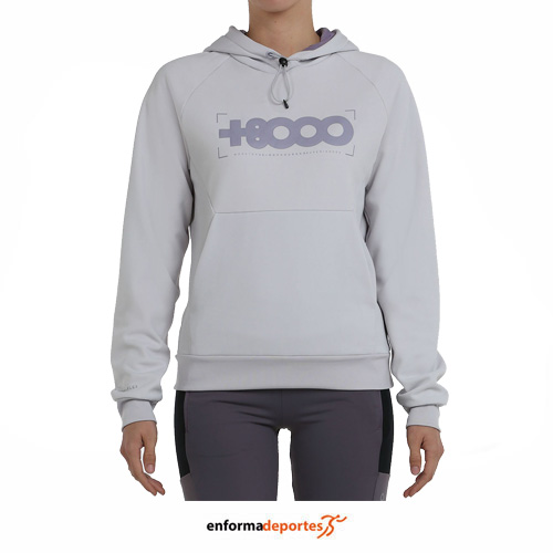 Sudadera mujer +8000 BEL, confeccionada en tejido poliéster con perchado interior, con logo estampado con efecto 3D, con capucha ajustable con cordón elástico y tanka, con estampado de marca «Eighthousanders» en el interior de la capucha, puños y bajo en canalé y bolsillos tipo canguro.