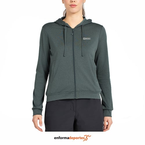 Sudadera mujer +8000 VERMAX, capa media abierta, con capucha ajustable en tejido de poliéster y spandex, con bolsillos laterales, logo reflectante en el pechoy cierre con cremallera completa.
