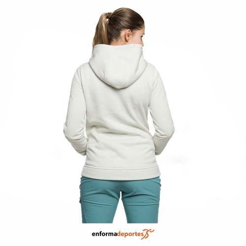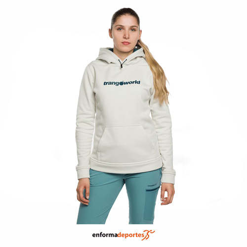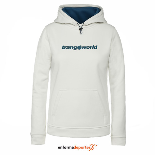 Sudadera de mujer, POPPI de la marca TRANGO, con capucha fija, manga sentada, puños y cinturilla. Con bolsillo frontal canguro con dos accesos. Sudadera cómoda y agradable, con elasticidad para facilitar el movimiento.
