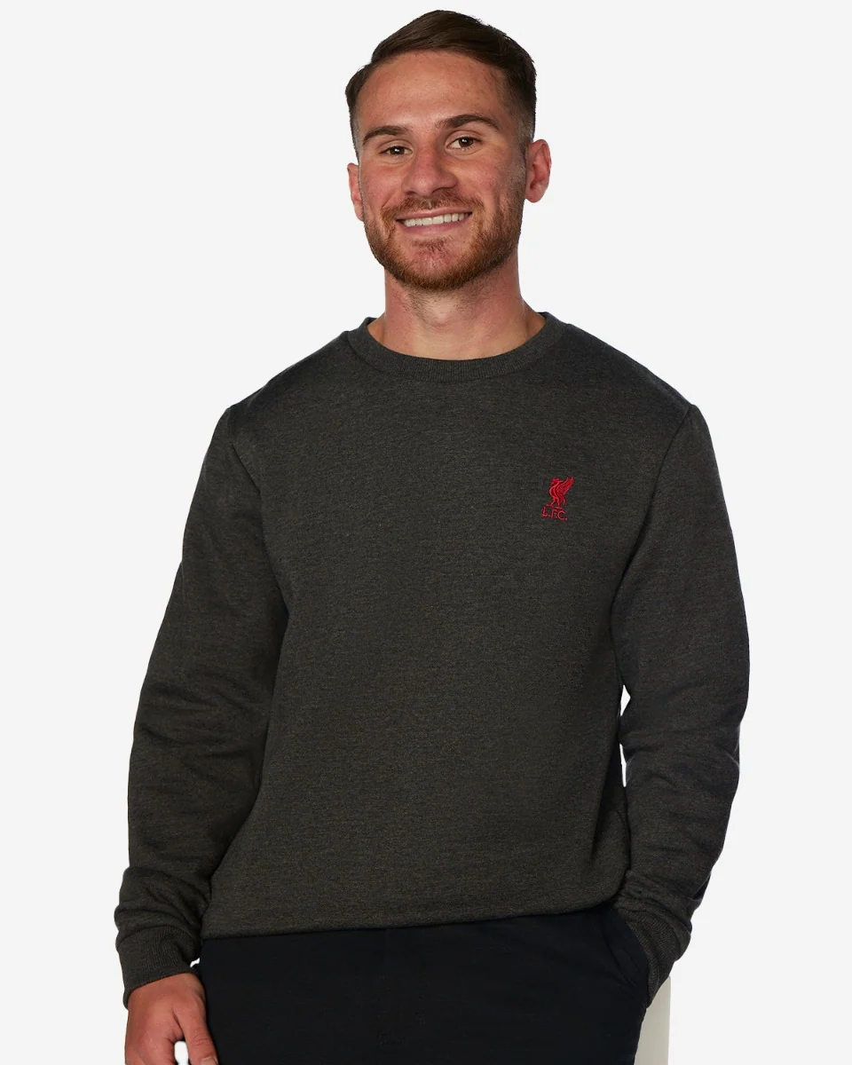 Demuestra tu pasión por los Reds con esta sudadera oficial del Liverpool FC. De color verde oscuro con el emblemático escudo del club bordado en rojo en el pecho, esta prenda combina estilo y orgullo futbolero. Con un diseño clásico de cuello redondo, puños y cintura acanalados, ofrece comodidad y un ajuste relajado perfecto para el día a día. Ideal para los verdaderos fanáticos del Liverpool que quieren representar a su equipo con elegancia y discreción.