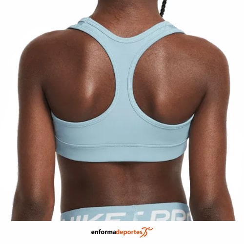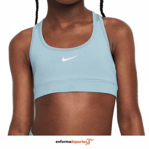 Top junior NIKE SWOOSH SPORT, confeccionado en tejido poliéster, con correas anchas y cómodas que brindan un ajuste con soporte, gracias a la tecnología Nike Dri-FIT absorbe el sudor de la piel para acelerar la evaporación, lo que ayuda a mantener la transpirabilidad y la comodidad, con dos capas de tela en la parte frontal se sienten suaves y con sujeción, al mismo tiempo que brindan una amplia cobertura, confeccionado en tela suave y ligera se estira para adaptarse cómodamente el cuerpo, y el contorno elástico proporciona un ajuste cómodo. El diseño clásico de espalda deportiva te permite moverte con facilidad, y las costuras lisas y planas se sienten cómodas debajo de tu atuendo.