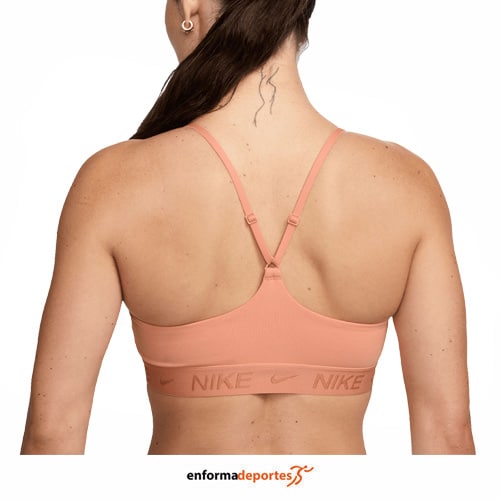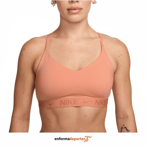Top mujer NIKE INDY LIGHT SUPPORT PAD, prenda con ajuste perfecto gracias a los tirantes finos que se ajustan fácilmente en la espalda, con almohadillas técnicas se deslizan desde la parte inferior y permanecen en su sitio, perfiles invisibles, confeccionado en tejido con tecnología Nike Dri-FIT que evacua el sudor para una evaporación más rápida, se mantiene seco y cómodo, con suave banda de jacquard en el pecho para un ajuste seguro sin pellizcos ni arrugas.