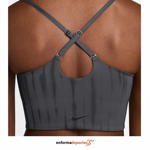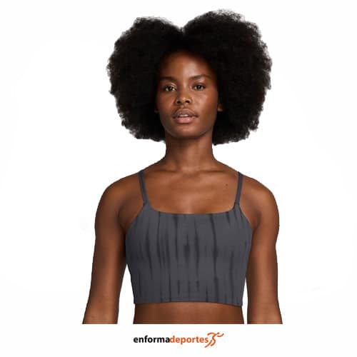 Top mujer NIKE ONE LIGHT-SUPPORT LIGHT, de corte largo, confeccionado en tejido suave y de peso medio se estira con cada movimiento y se seca rápidamente, de sujeción ligera te brinda una sujeción suave con mucha libertad, ideal para entrenamientos de bajo impacto o para estar cómoda todo el día, con tirantes ajustables que se adaptan a ti, con posibilidad de cruzarlos, con tecnología Nike Dri-FIT aleja el sudor de la piel para una evaporación más rápida, lo que ayuda a mantenerte seco y cómodo y gracias al forro espaciador liviano y cosido se siente transpirable y al mismo tiempo brinda un poco de cobertura.