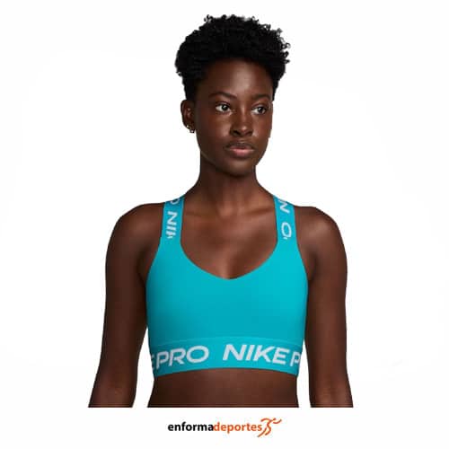 Top mujer NIKE PRO LIGHT-SUPPORT PADD, confeccionado en tejido elástico, con tecnología Dri-Fit,  ligero, cómodo y de secado rápido, con banda elástica en el pecho que sujeta de forma ceñida garantizando gran libertad de movimientos.
