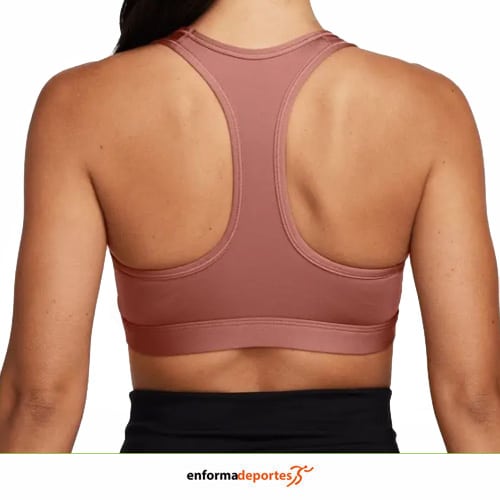 Top mujer NIKE SWSH MED SPT, de soporte medio, ajuste adherente, forro mesh, confeccionado en tejido poliéster con tecnología DRI-FIT, con cuello redondo con cinta interna, acolchado cosido y no extraíble, banda elástica debajo del seno para un fit suave y espalda en forma de X para mayor comodidad y libertad de movimientos.
