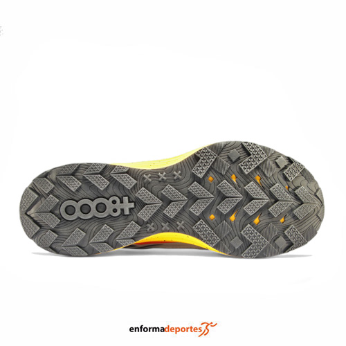 Zapatilla hombre +8000 TIGOR 2, ideales para uso trail/running, fabricadas en combinación de nylon y lycra con termoselladas que evitar las costuras, con forro interior de mesh garantizando mayor conformt y mejor transpiración, con construcción del talón y empeine tipo «calcetín» que proporciona mayor ajuste, suela que proporciona una gran amortiguación y que gracias a su diseño taqueado, nos aporta una tracción y un agarre óptimo.