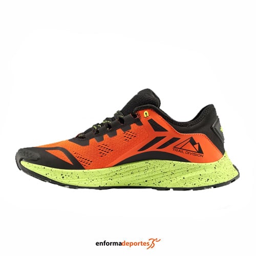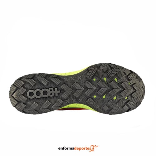 Zapatilla hombre +8000 TIGOR 2, zapatilla ideal todoterreno perfecta para trailrunning o senderismo, confeccionada en su parte superior de malla transpirable y refuerzos sintéticos termosellados para evitar costuras innecesarias, con puntera reforzada, entresuela de EVA de gran amortiguación, con plantilla extraíble y suela de goma con un troquelado que mejora el agarre.