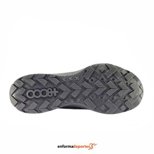 Zapatilla hombre +8000 TIGOR 2, zapatilla ideal todoterreno perfecta para trailrunning o senderismo, confeccionada en su parte superior de malla transpirable y refuerzos sintéticos termosellados para evitar costuras innecesarias, con puntera reforzada, entresuela de EVA de gran amortiguación, con plantilla extraíble y suela de goma con un troquelado que mejora el agarre.