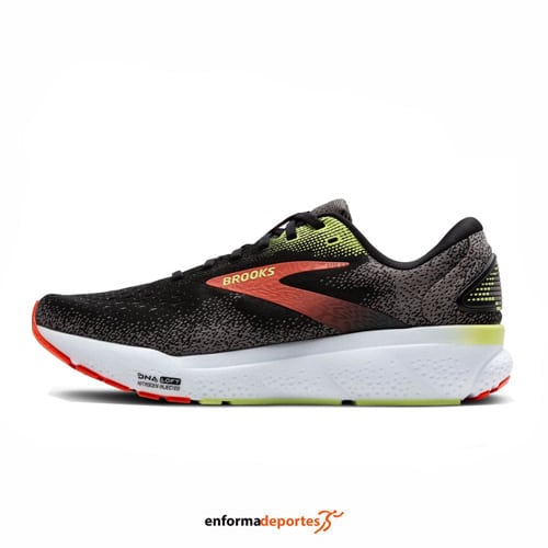 Zapatillas hombre BROOKS GHOST 16, confeccionada en su parte superior de malla mesh, elástica y transpirable. Con amortiguación suave gracias a la espuma de la entresuela DNA LOFT V3, que ofrece comodidad ligera, entresual blanda y gracias al Segmented Crash Pad promueven un flujo fácil desde el aterrizaje hasta el despegue de los dedos, suela que proporciona tracción, ideal para asfalto. Drop. 12mm.