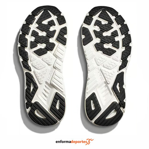 Zapatilla hombre running HOKA ARAHI 7, ideal para pronadores, fabricadas en tejido con tecnología patentada J-Frame™, con empeine de punto plano con buen apoyo por zonas que mejora la sujeción en la zona del pie medio, además de afinar el ajuste con una lengüeta más acolchada y un refuerzo doble elástico bajo la línea de cordones que contribuye a reducir el desplazamiento de la lengüeta, con trabilla del talón ampliada, entresuela de EVA moldeada por compresión, cierre con cordones para mayor ajuste y suela de caucho Durabrasion Rubber™, para mayor durabilidad.