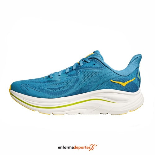 Zapatilla hombre HOKA CLIFTON 10, combinan ligereza y amortiguación, ideales para corredores con pisada neutra, con entresuela de espuma CMEVA más gruesa, aumentando la altura del talón en 8 mm para una mayor absorción de impactos, con upper de punto jacquard que proporciona transpirabilidad y soporte, mientras que la lengüeta con fuelle y los cordones mejoran el ajuste y la sostenibilidad. Ofrecen una transición suave del talón a la punta, facilitando una pisada más natural y eficiente. Gracias a la tecnología Active Foot Frame proporcionan estabilidad moderada sin comprometer la flexibilidad, con suela de goma Durabrasion que garantiza tracción y resistencia al desgaste en diversas superficies. Con un aumento de 3 mm en el drop talón-puntera, ofrece una posición de carrera más natural y cómoda.