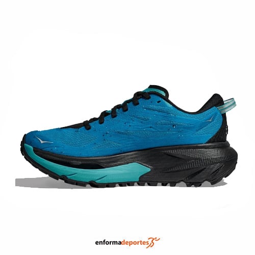 Zapatilla hombre HOKA MAFATE 5, fabricadas en su parte superior con upper técnico y resistente, con empeine elástico con tratamiento antidesgaste que garantiza durabilidad y ajuste, con entresuela de doble densidad con capa superior de espuma que proporciona suavidad y absorción de impactos, con suela Vibram® Megagrip y tecnología Rocker Integrity, proporcionan tracción, estabilidad y suavidad en cada paso, con tacos de longitud de 5mm, en cualquier tipo de superficie.