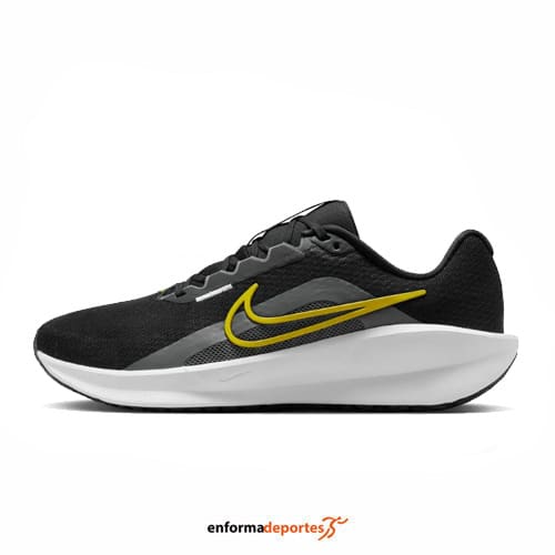 Zapatilla hombre NIKE DOWNSHIFTER 13, confeccionada en su parte superior de malla transpirable multicapa suave y cómoda al tacto para ofrecer una gran transpirabilidad, con banda de ajuste interior actualizada que rodea el mediopié para ofrecer más sujeción y firmeza. Con espuma reciclada flexible para ofrecer una pisada suave con amortiguación, sujeción y un diseño con materiales sostenibles, con suela exterior de goma verde duradera con, al menos, un 13 % de Nike Grind. Protección completa contra la abrasión desde la puntera hasta el talón y diseño con tacos para una mayor durabilidad y tracción.