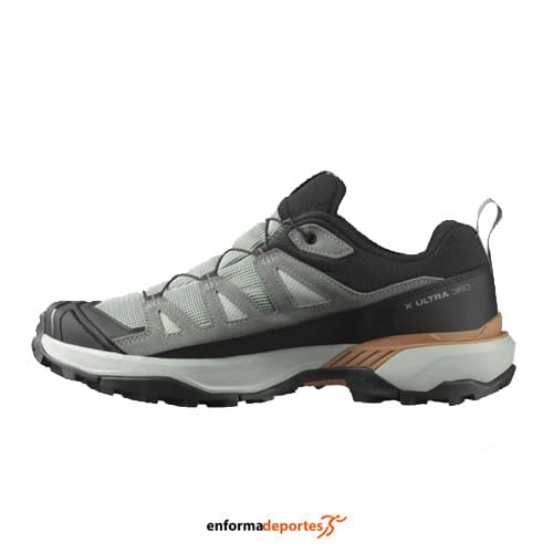 Zapatilla hombre SALOMON X ULTRA 360 GTX, fabricada con membrana Gore-Tex, parte superior de piel, con chasis Advanced Chassis™ es un inserto moldeado integrado en la suela. Ofrece una sujeción lateral potente y una protección segura, además de una movilidad y flexibilidad óptimas, con entresuela EnergyCell™, espuma de EVA de alto rendimiento que amortigua los impactos, con bolsillo para cordones, sistema de cierre Quicklace™, puntera protectora, tecnología SensiFit™ envuelve el pie desde la entresuela hasta el sistema de cordones, lo que proporciona un ajuste seguro, cómodo y prácticamente personalizable alrededor de todo el sistema, con forro interior textil que proporciona transpirabilidad y comodidad y con plantilla OrthoLite® ofrece una amortiguación, transpirabilidad y durabilidad superiores a fin de mejorar la comodidad y el rendimiento de tu calzado y suela All Terrain Contagrip®: Nuestro All Terrain Contagrip® está diseñado para la más amplia variedad de superficies. Ofrece durabilidad y confianza sobre superficies húmedas, secas, duras o resbaladizas.