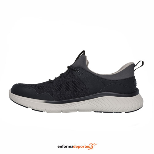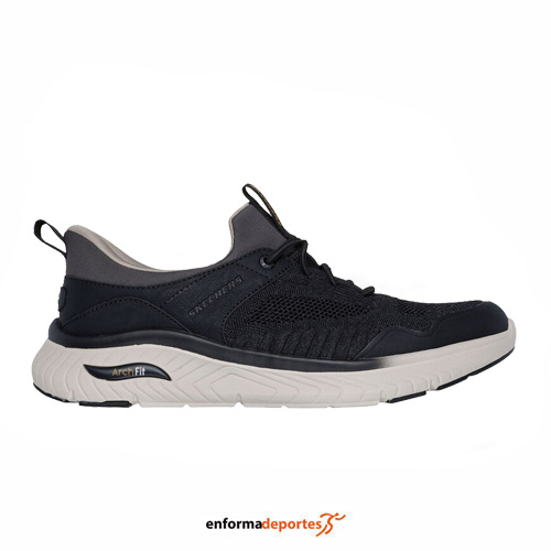 Zapatilla hombre SKECHERS ARCH FIT CROSSER-E, fabricada en su parte superior de Knit y tejido sintético con cordones elásticos, con tecnología Skechers Hands Free Slip-ins® para un ajuste cómodo, con sistema exclusivo Heel Pillow™ para el talón que mantiene el pie seguro, plantillas Skechers Arch Fit® con soporte en el arco plantar certificado y extraíble que se amolda a tu pie para reducir el impacto y mejorar la distribución del peso y suela flexible con tracción.