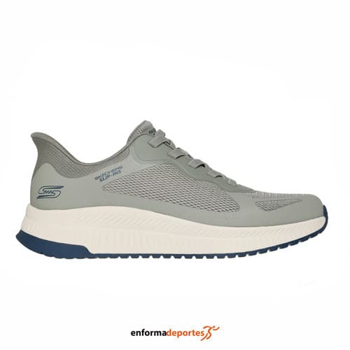 Zapatilla hombre SKECHERS BOBS SQUAD 4, fabricada en su parte superior de knit con cordones elásticos, con tecnología Skechers Hands Free Slip-ins® para un ajuste cómodo, con sistema exclusivo Heel Pillow™ para el talón que mantiene el pie en su sitio de forma segura, con cómoda plantilla con amortiguación Skechers Memory Foam™, media suela contorneada con absorción de impactos y suela flexible con tracción.