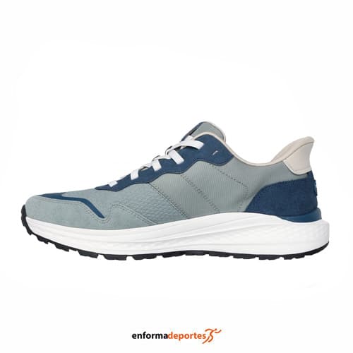 Zapatilla hombre SKECHERS SLADE ULTRA-MERCER, confeccionado en su parte superior de cuero y tejido con cordones elásticos, con panel de talón moldeado Skechers Hands Free Slip-ins® para un ajuste fácil, entresuela ligera que absorbe impactos, exclusiva almohada Heel Pillow™ mantiene el pie firmemente en su lugar, plantilla cómoda y acolchada Skechers Air-Cooled Memory Foam®, que ayuda a neutralizar el olor potencial, amortiguación Skechers Memory Arch™ para mayor soporte, relaxed Fit® para un ajuste cómodo y espacioso en la puntera y el antepié y suela de tracción flexible.