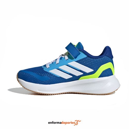Zapatilla infantil ADIDAS RUNFALCON 5 EL C, de corte clásico, con cierre con cordones elásticos y correa autoadherente, con empeine y forro textil, con mediasuela Cloudfoam y suela de goma.