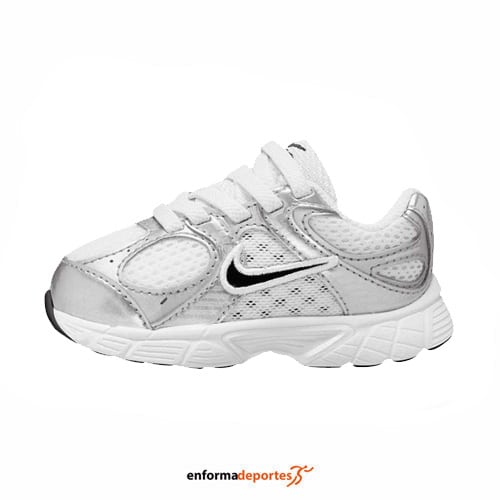 Zapatilla infantil NIKE V5, fabricada en su parte superior de malla con revestimientos de cuero sintético es transpirable y duradera, con forro suave en el cuello y la entresuela de espuma se combinan para ofrecer comodidad durante todo el día, con suela con ranuras inspiradas en los años 2000 añade una tracción excelente, con agujetas elásticas y presilla de agarre en el talón.