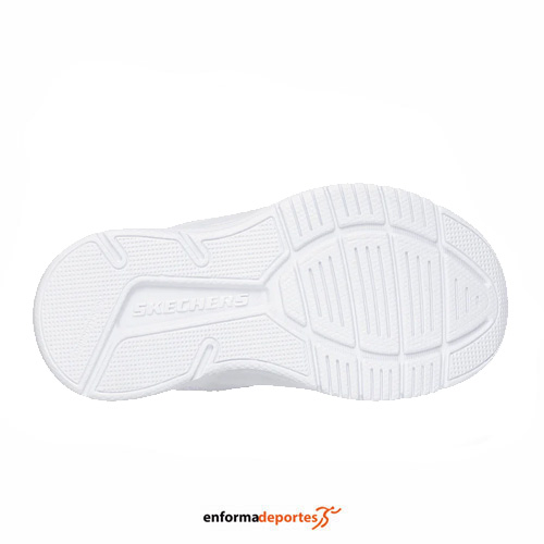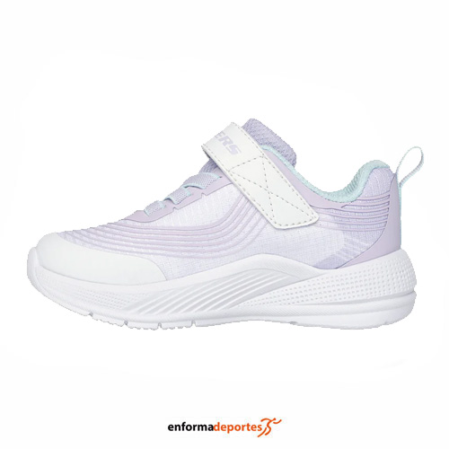 Zapatilla infantil SKECHERS MICROSPEC ADVANCE, con parte superior de malla multicolor y capa superpuesta, con cordones elásticos, cierre de velcro Adaptive Closure de Skechers para personalizar el ajuste y ponerlas o quitarlas fácilmente, con cómoda plantilla con amortiguación y suela flexible con tracción.