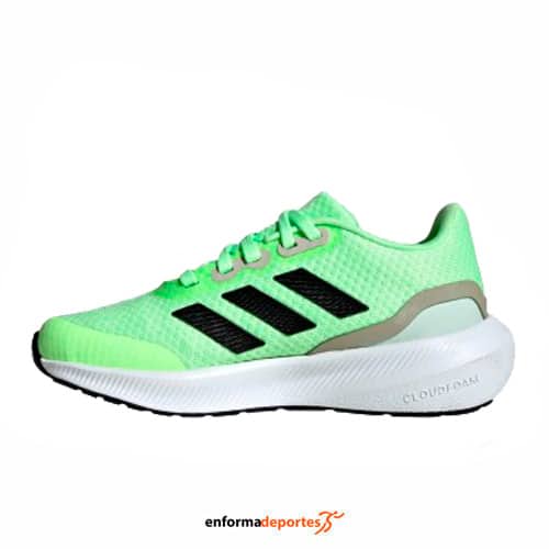 Zapatilla junior ADIDAS RUNFALCON 3.0 K, confeccionada en su parte superior textil, con refuerzos en puntera, talón, etc. de horma clásica, mediasuela de EVA, forro textil, suela de goma y cierre con cordones.