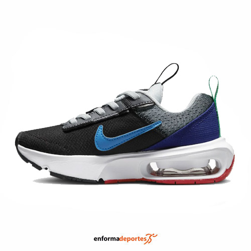 Zapatilla junior NIKE AIR MAX, fabricada con revestimientos de piel sintética y tela, que aportan tacto ligero, con unidad Max Air rediseñada y espuma suave que ofrece comodidad ligera, con cierre con cordones elásticos y suela de goma que proporciona agarre.