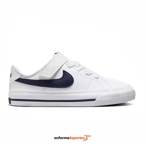 Zapatilla junior NIKE COURT LEGACY, duraderas y cómodas, confeccionadas en su parte exterior de piel duradera con un estilo clásico, con cordones elásticos y correa de cierre por contacto para que sean fáciles de poner y de quitar, suela de goma con patrón gráfico de diseño de espiga para ofrecer tracción y un estilo clásico. La amortiguación de espuma suave aporta comodidad y ligereza.
