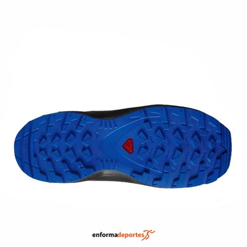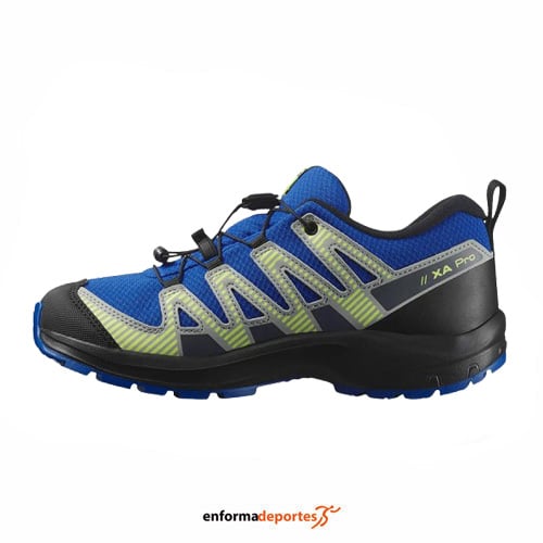 Zapatilla junior SALOMON XA PRO V8 CSWP, confeccionada en tejido de malla con refuerzos para mayor durabilidad, con suela contagrip® md con compuesto más duradero con patrón de tacos que funciona igualmente bien en superficies duras y lisas o blandas y sueltas, con ajuste preciso gracias a sistema de cierre quicklace ™, con tecnología sensifit ™ que acuna el pie desde la entresuela hasta el sistema de cordones, proporcionando un ajuste seguro, ceñido y prácticamente personalizado en todo el pie.