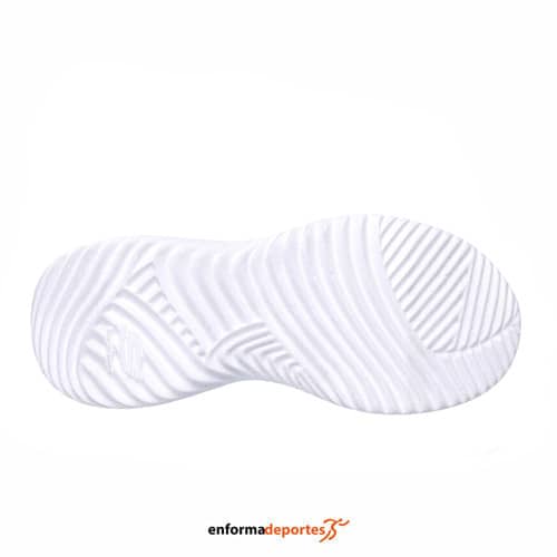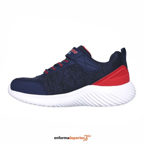 Zapatilla junior SKECHERS BOUNDER, confeccionada en su parte superior de malla y material sintético, modelo waterproof con costuras selladas, con cómoda plantilla con amortiguación, media suela ligera con absorción de impactos, con cierre con cordones elásticos y tira ajustable en empeine, suela flexible.