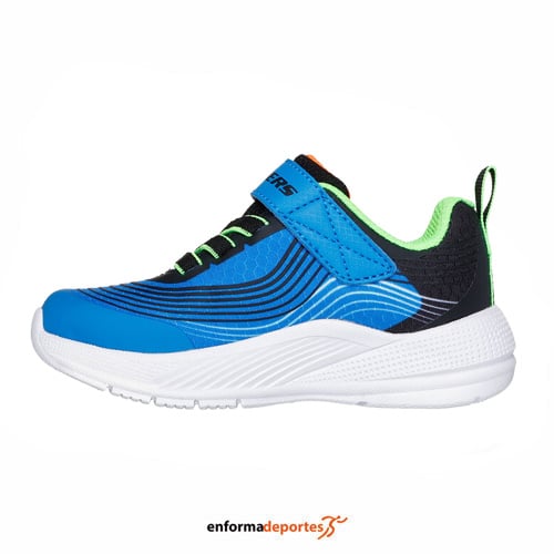 ZAPATILLA JUNIOR SKECHERS MICROSPEC ADVANCE | BLUE & LIME TEXTILE / SYN