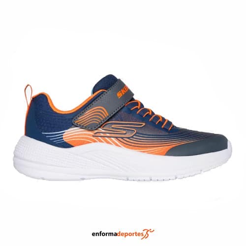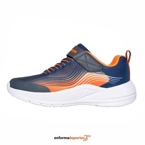 ZAPATILLA JUNIOR SKECHERS MICROSPEC ADVANCE | NAVY & ORANGE TEXTILE / S